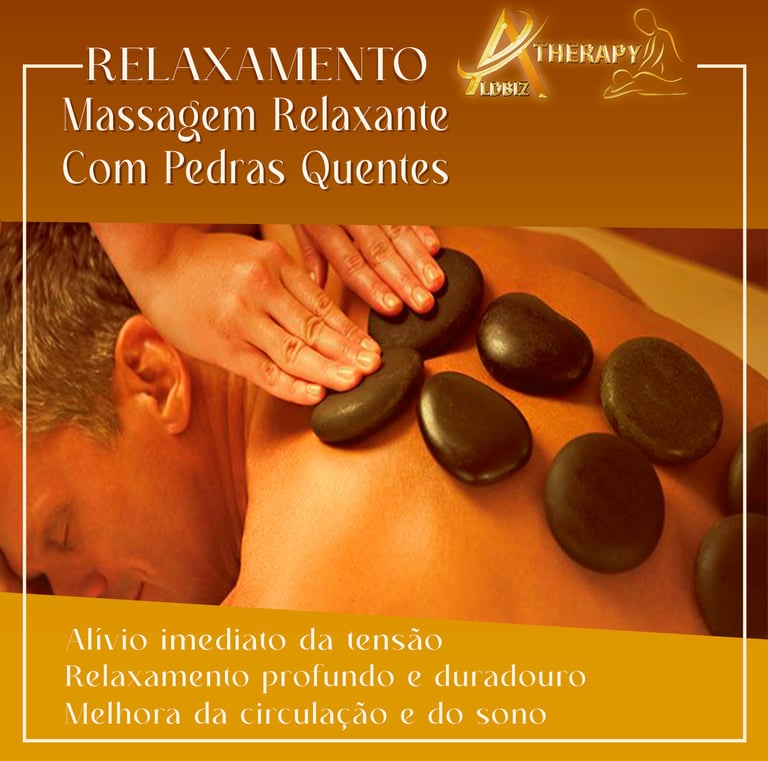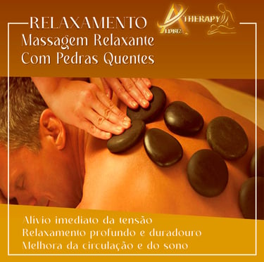 Massagens suaves com oléo e pedras quentes que ajudam a relaxar o corpo e a mente, aliviando o estresse e causando conforto