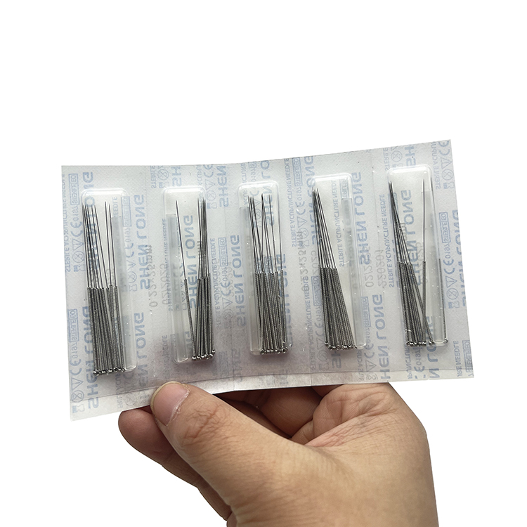 Agulhas de acupuntura estéreis e descartáveis, indicadas para uso profissional.