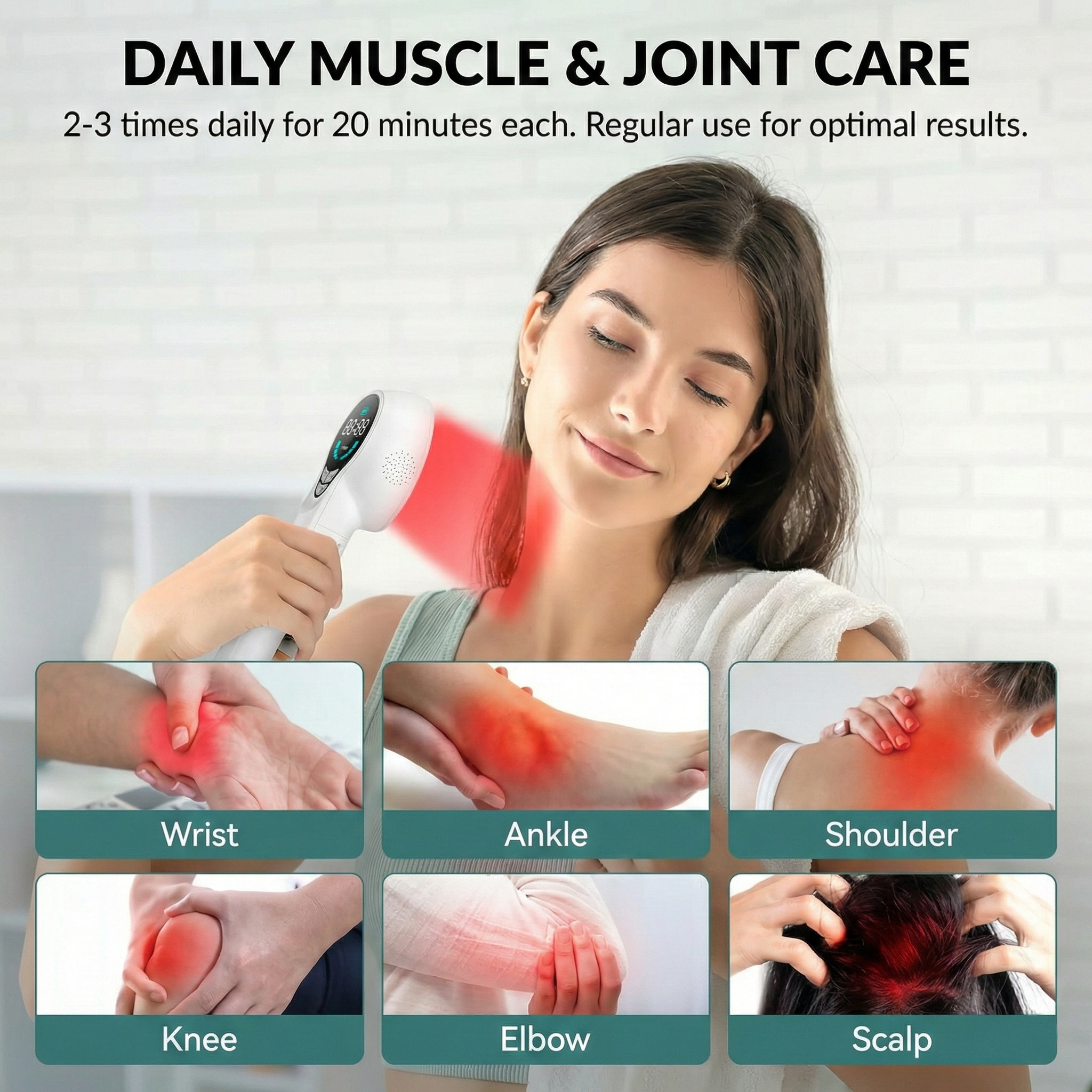[Tratamento específico]: o dispositivo de terapia a laser frio é muito eficaz no alívio da dor muscular, desconforto nas articulações e dores nos cotovelos, ombros, tornozelos e joelhos. Candeeiro de luz vermelha para obter os melhores resultados, recomendamos uma aplicação de 3 a 5 vezes por semana durante quatro semanas. Cada sessão dura 15 minutos.