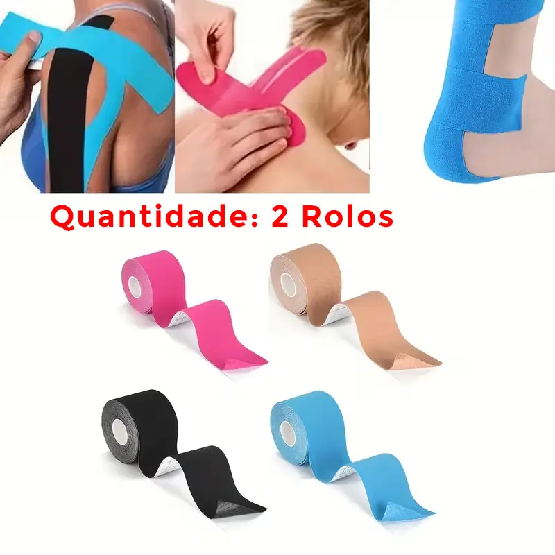 Pacote com 2 rolos de fita kinesiológica elástica para fortalecimento muscular. 5.0 cm x 5m