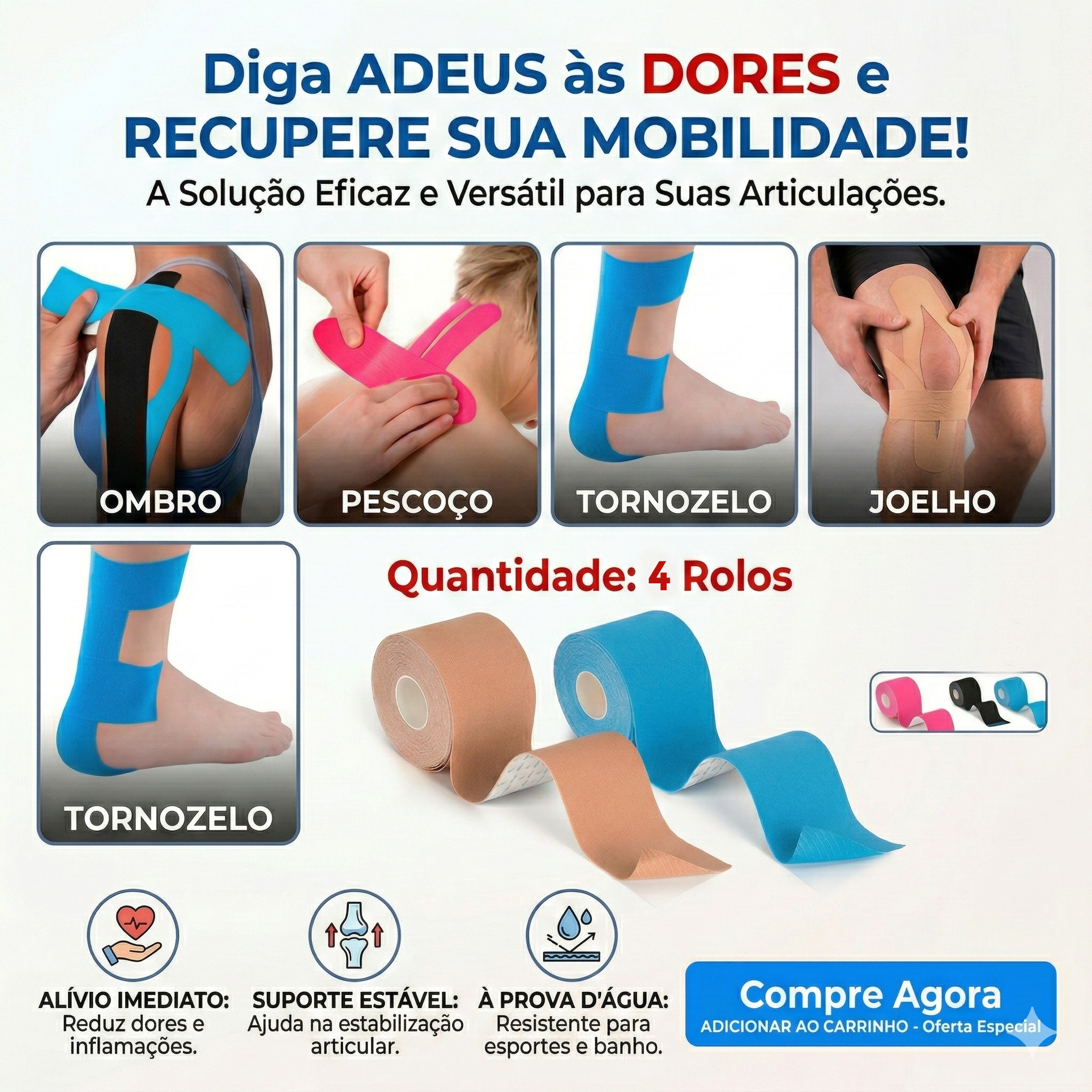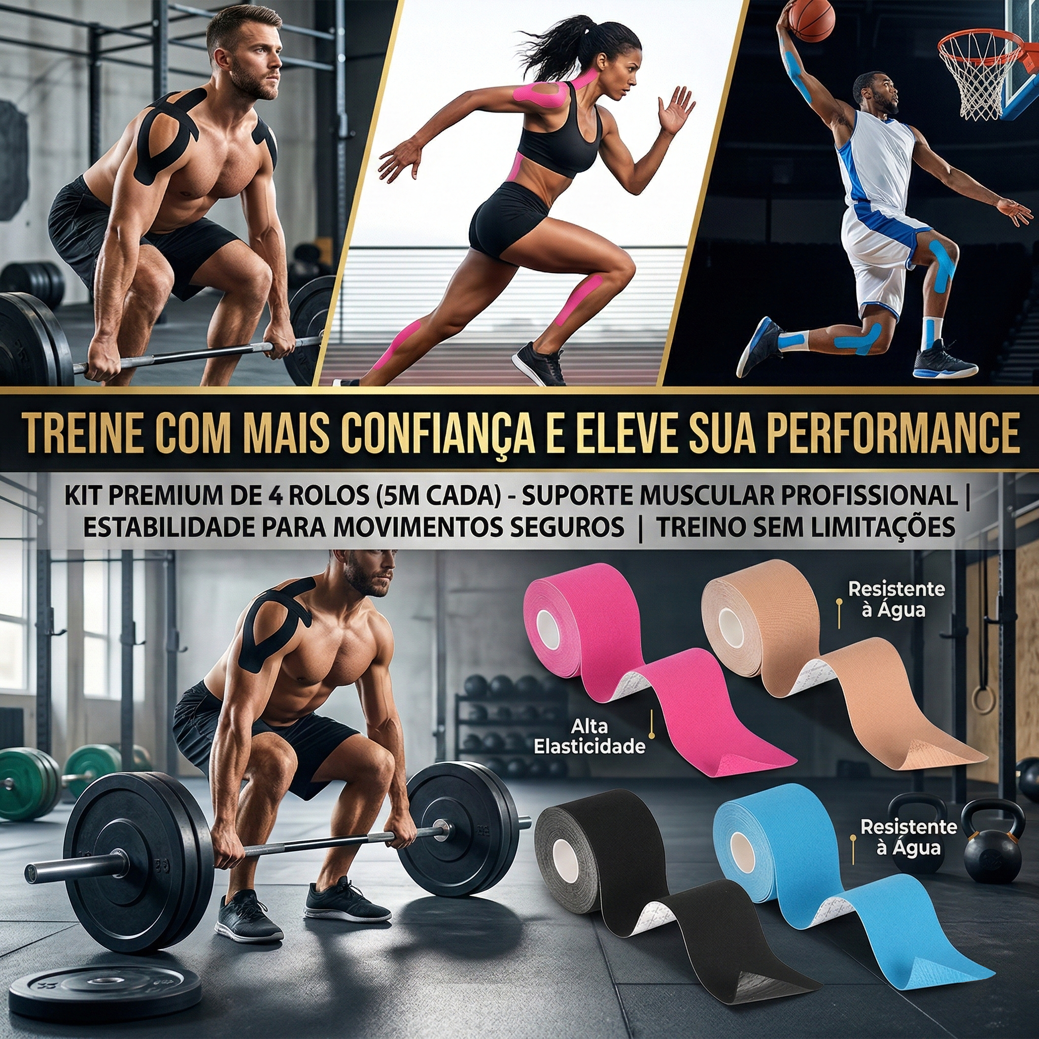 Pacote com 2 rolos de fita kinesiológica elástica para fortalecimento muscular. 5.0 cm x 5m